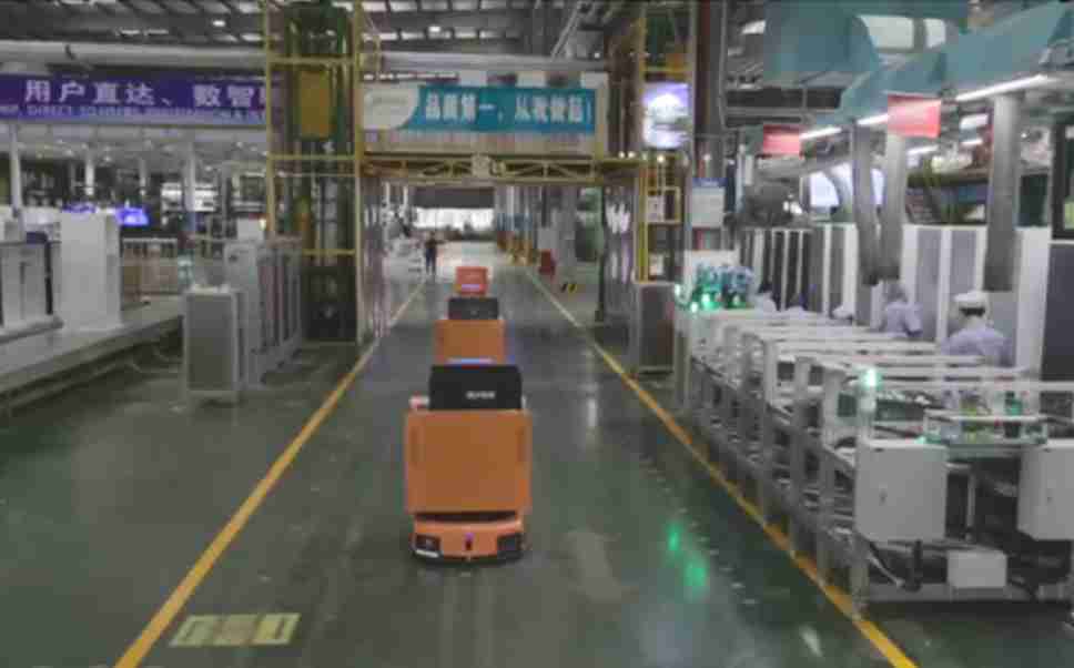 为车载冰箱物流配送打造的智能解决方案,,,包含产中物流通过潜伏举升AMR搬运至线边,,产后成品物流智能仓储,,流程包含产中物流智能齐套入库,,,,线边安灯叫料AMR智能配送至线边,,,,成品入库、、、、出库,,,通过无人堆高车机器人,,,智能仓储管理替代人工作业管理,,,实现更高存储、、、更高效率、、、、更具柔性化的解决方案。。。